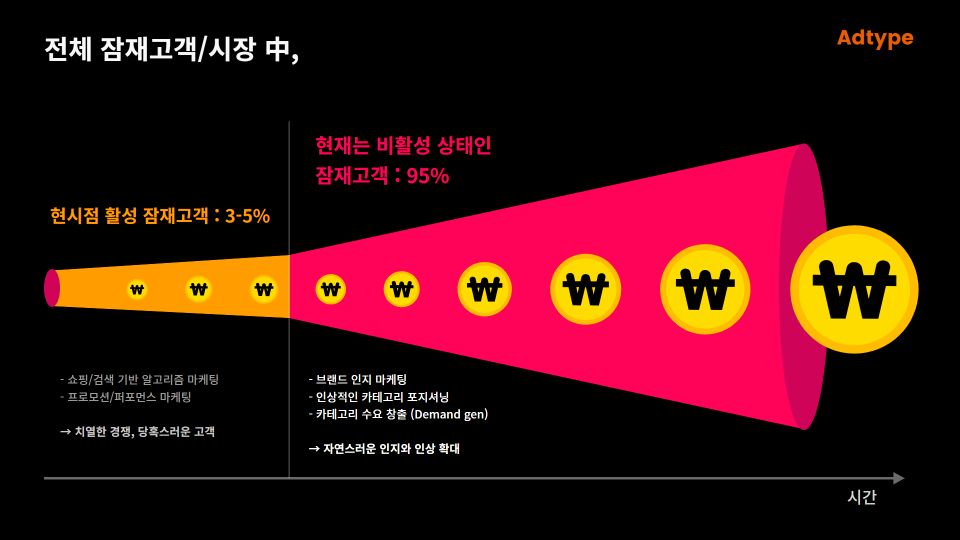 퍼포먼스 광고는 본질적으로, 이미 브랜드에 관심이 있거나 구매 의도가 있는 사람에게 전환을 유도하는 채널입니다. 인지가 형성된 상태에서 하단 전환을 최대화하는 도구입니다.