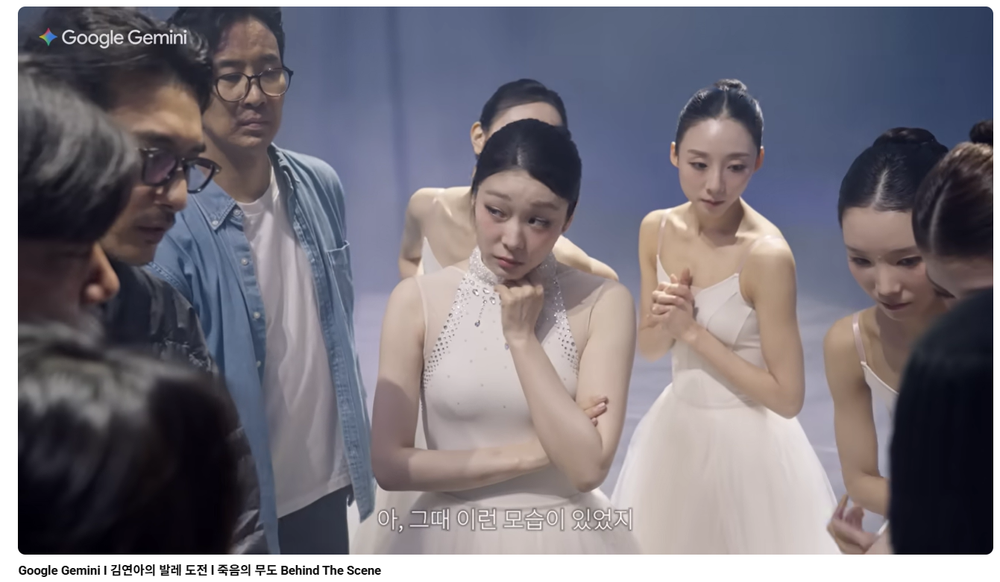 대한민국 발레의 아이콘 강수진이 멘토로 참여해 안무 구성부터 무대 연출까지 함께했고 국립발레단 발레리나들은 제미나이 라이브의 카메라 공유 기능으로 김연아의 동작을 실시간 교정했어요. 의상 디자인에는 김연아의 밴쿠버 올림픽 드레스를 참고해 제미나이로 발레 의상으로 재해석했습니다.